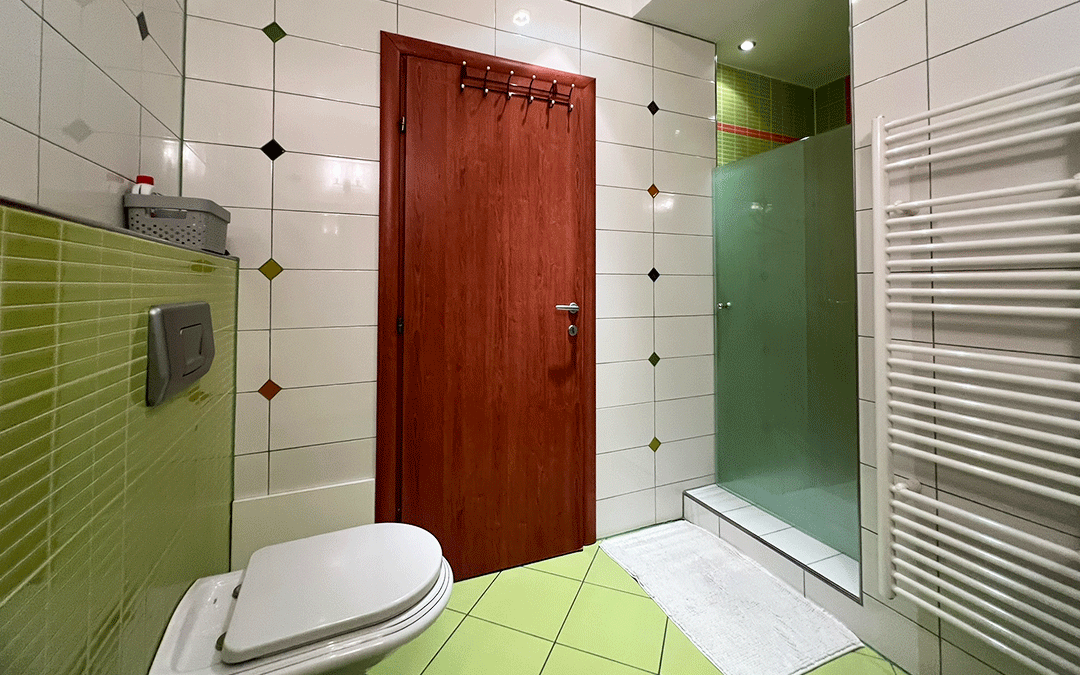 The apartment includes a private parking space in the building’s garage – a rare advantage in the central area.