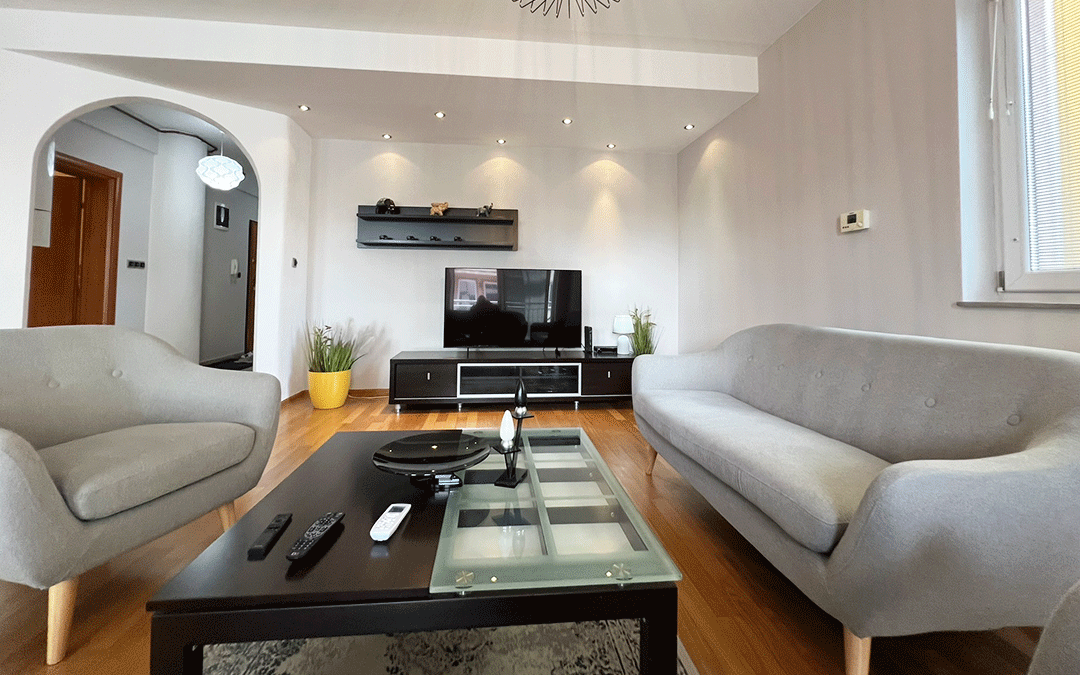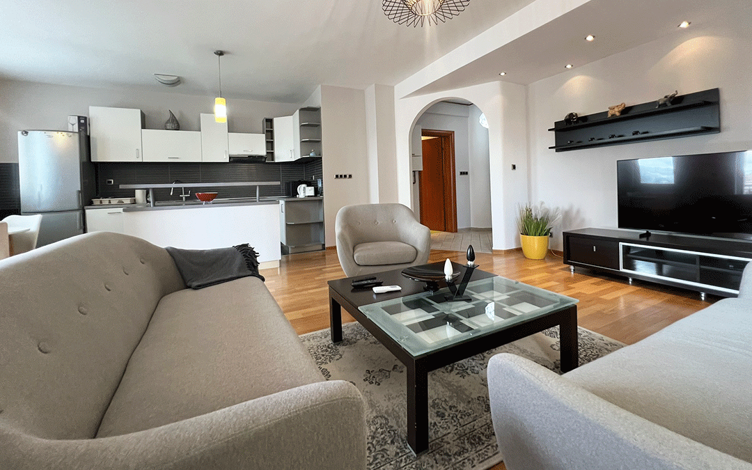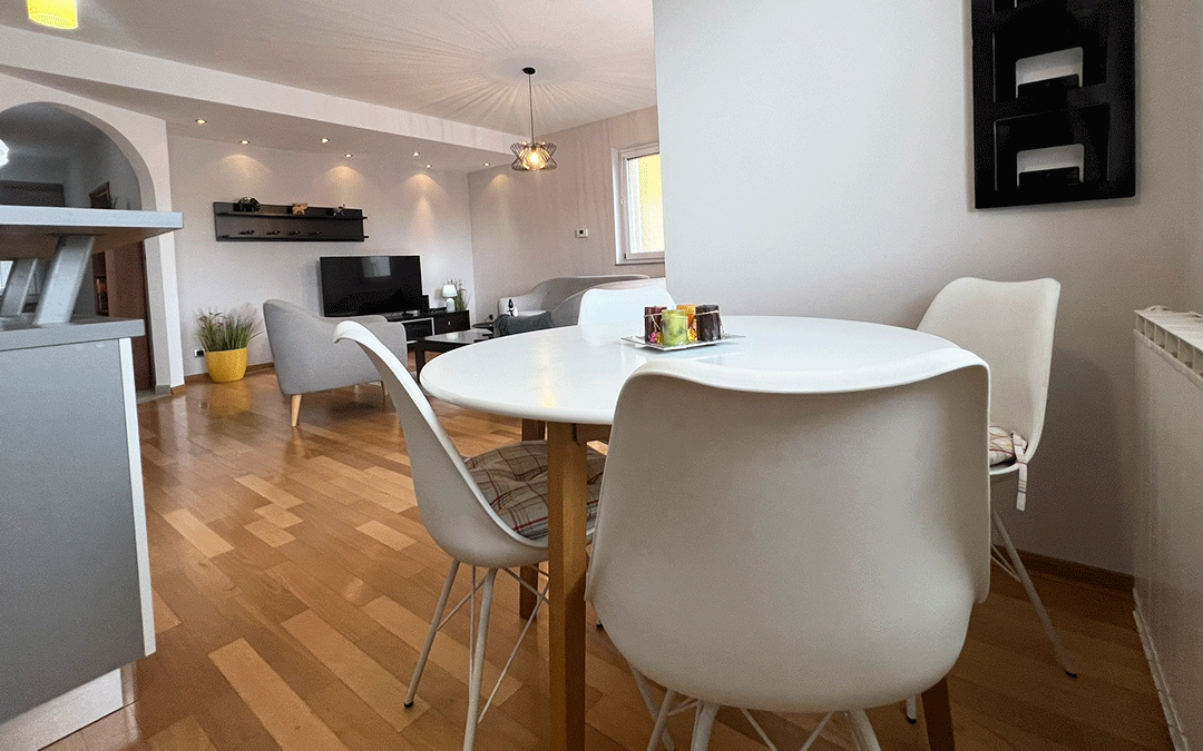This beautifully furnished three-bedroom apartment is available for long-term rent, located just a 5-minute walk from Sarajevo City Center (SCC). Situated in a peaceful and residential area near the city center, it offers both comfort and convenience.