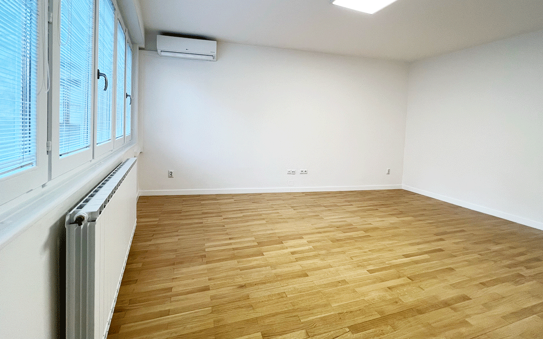 POTPUNO RENOVIRANA KANCELARIJA, POVRŠINE 53 m2 SE SASTOJI OD HODNIKA, DVIJE VELIKE PROSTORIJE, JEDNA MANJA I KUHINJA I KUPATILO.