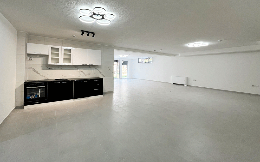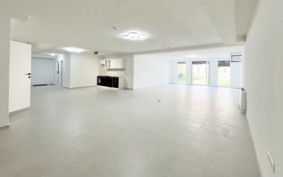 PROSTOR ODLIKUJE VISOKI STANDARD GRADNJE, PODOVI SU OBLOŽENI PLOČICAMA SA INSTALIRANIM PODNIM GRIJANJEM NA TOPLOTNE PUMPE. TAKODJER HLADJENJE POMOĆU FEN KOILERA.